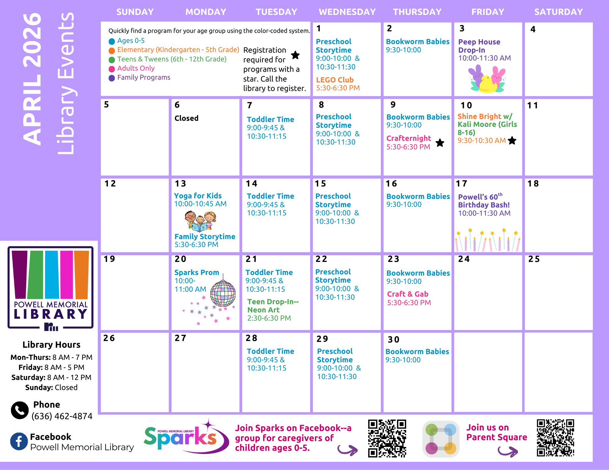 April is bursting with fun at Powell Memorial Library! 🌷📚 Here are just a few highlights you won’t want to miss:🐥 Peep House Drop-In – Get creative and build the ultimate marshmallow masterpiece! S...