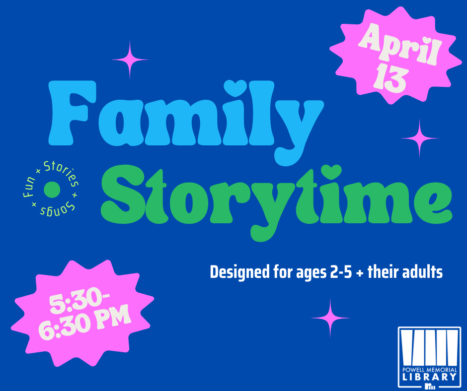 Join us Monday, April 13 for a fun-filled evening at Family Storytime! 📚✨Designed for children ages 2–5 and their grown-ups, this program includes engaging stories, songs, and hands-on activities t...